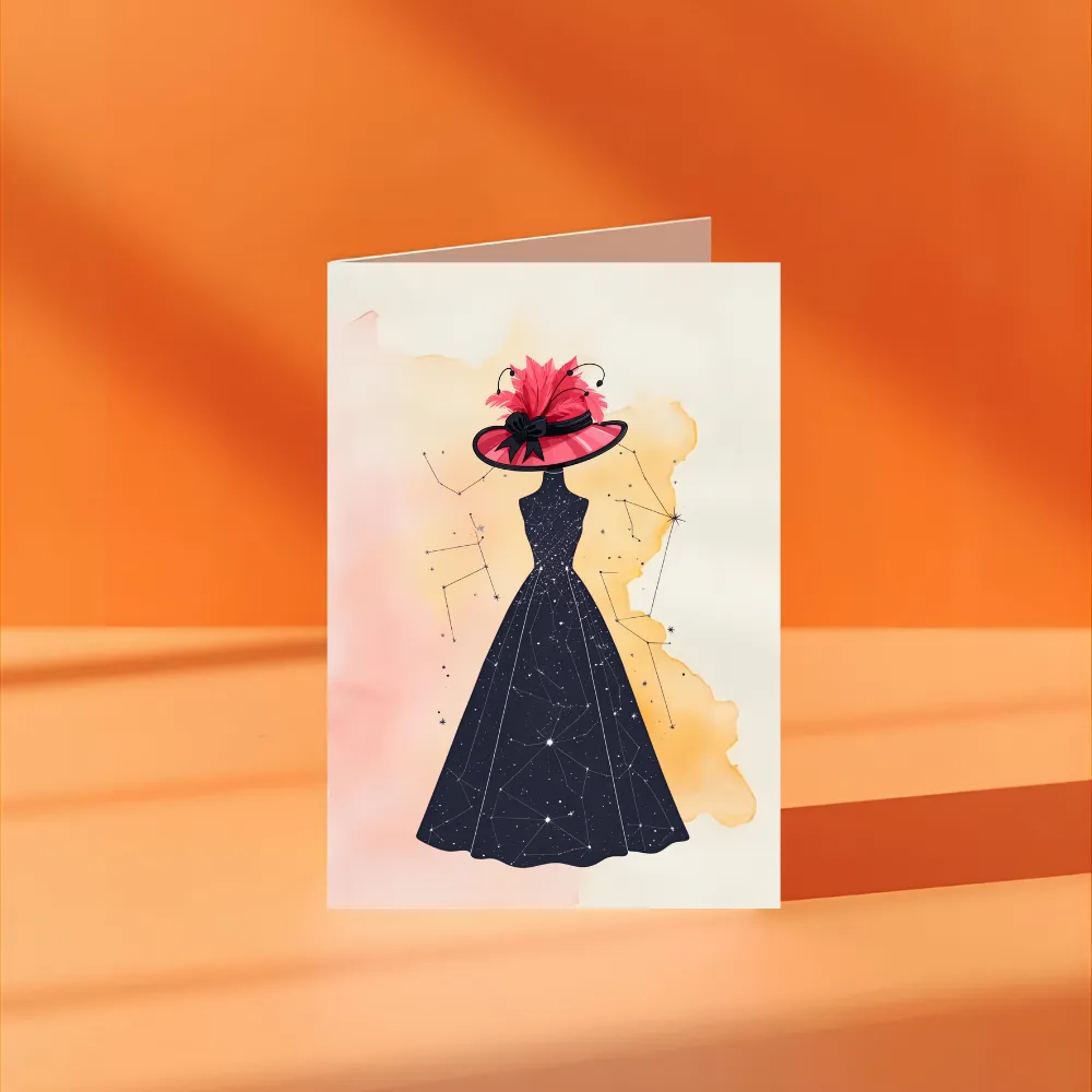 Celebrate her with a card as unique and elegant as she is! This Stylish Lady Maxi Dress Card Greeting Card features a striking silhouette of a lady in a stunning, long black gown. The dress is rendered with a captivating constellation print, giving it a magical, starlit quality that makes this stylish greeting card truly one-of-a-kind.